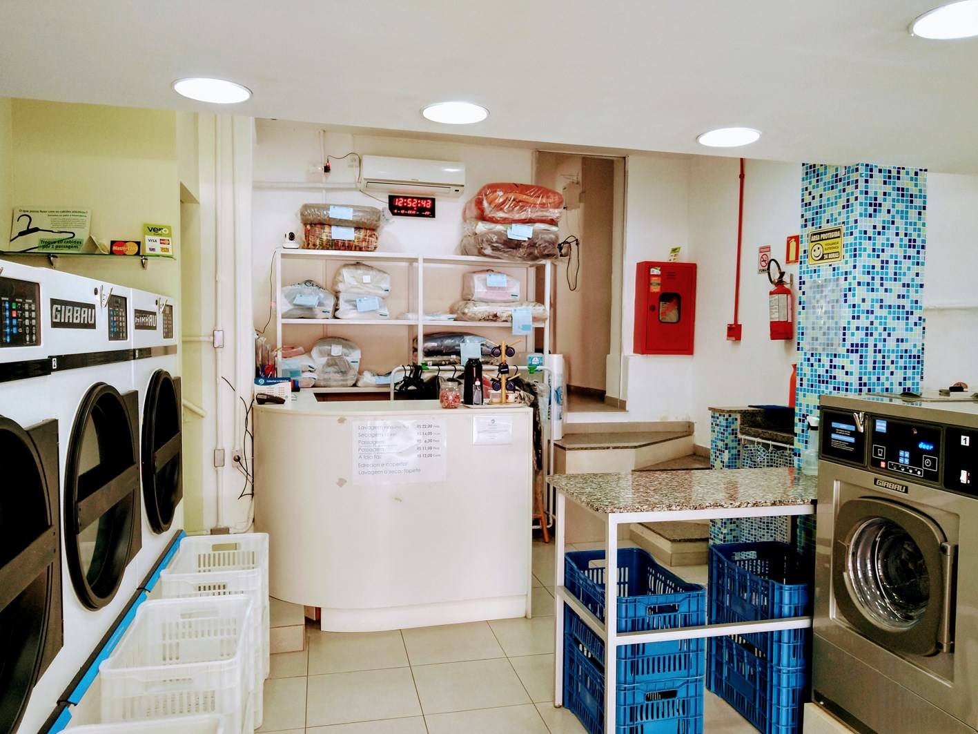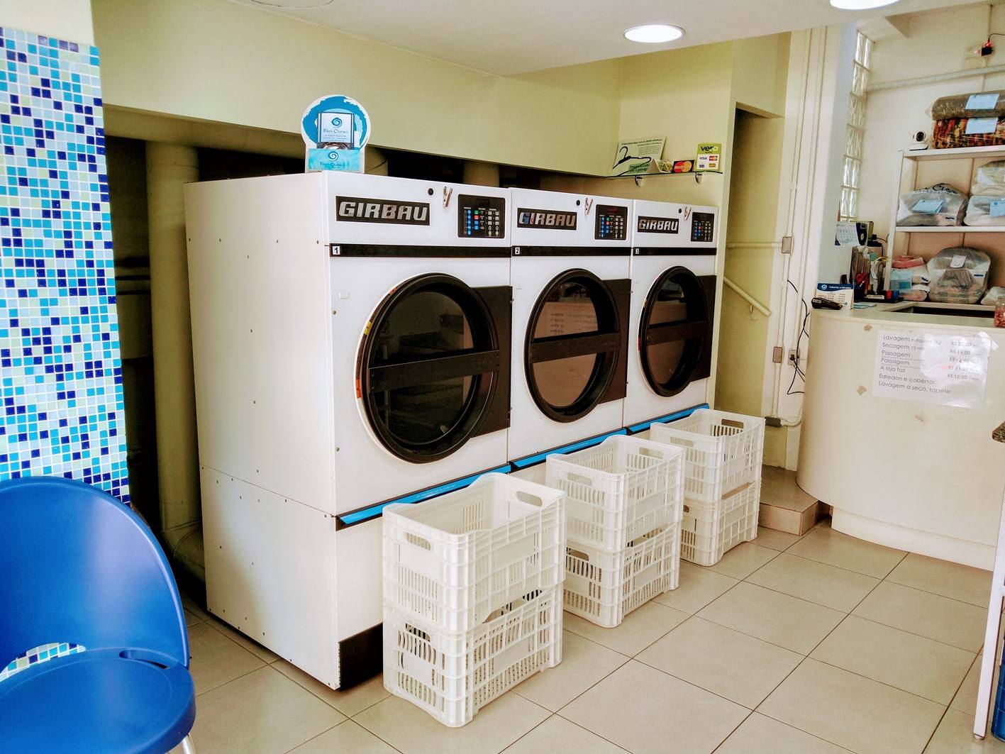 Dispomos de 4 lavadoras para até 7kg de roupas.